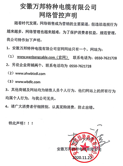 鄭重聲明:安徽萬邦特種電纜有限公司官方網站為:www_wanbangcable_com.ek39.cn,除此之外無任何子網站或合作網站,其余均為假冒偽劣。電話:0550-7621728 13485756353 地 址:安徽省天長市滁州高新技術產業開發區經四路29號